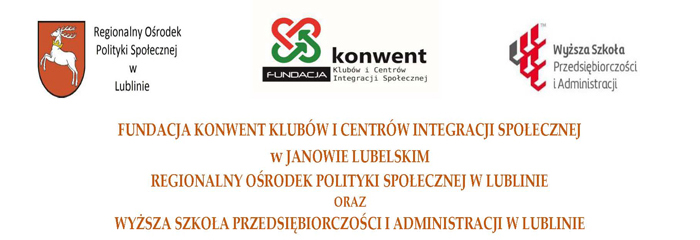 Szanowni Państwo Fundacja Konwent Klubów i Centrów Integracji Społecznej w Janowie Lubelskim serdecznie zaprasza na konferencję: WZMACNIANIE POTENCJAŁU ŚRODOWISK PODMIOTÓW REINTEGRACYJNYCH NA LUBELSZCZYŹNIE – TEORIA I PRAKTYKA Konferencja organizowana jest przez Fundację Konwent